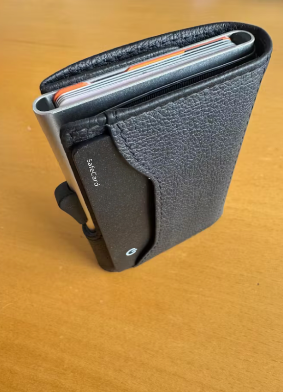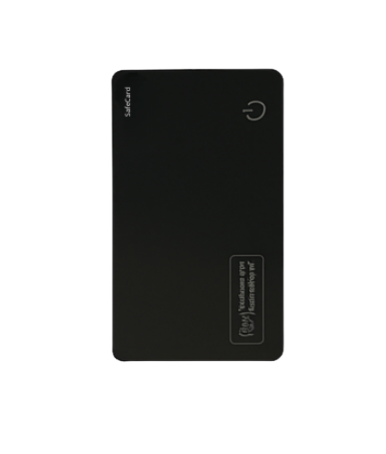 La SafeCard est aussi fine qu’une carte bancaire, se glisse facilement dans votre portefeuille, passeport ou sac.